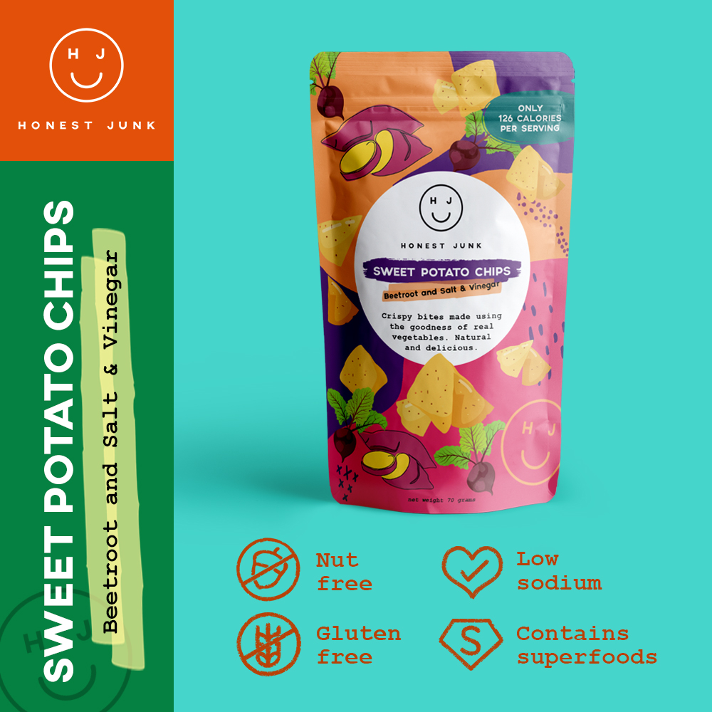 Sweet Potato + Beetroot Salt and Vinegar Veggie Crisps